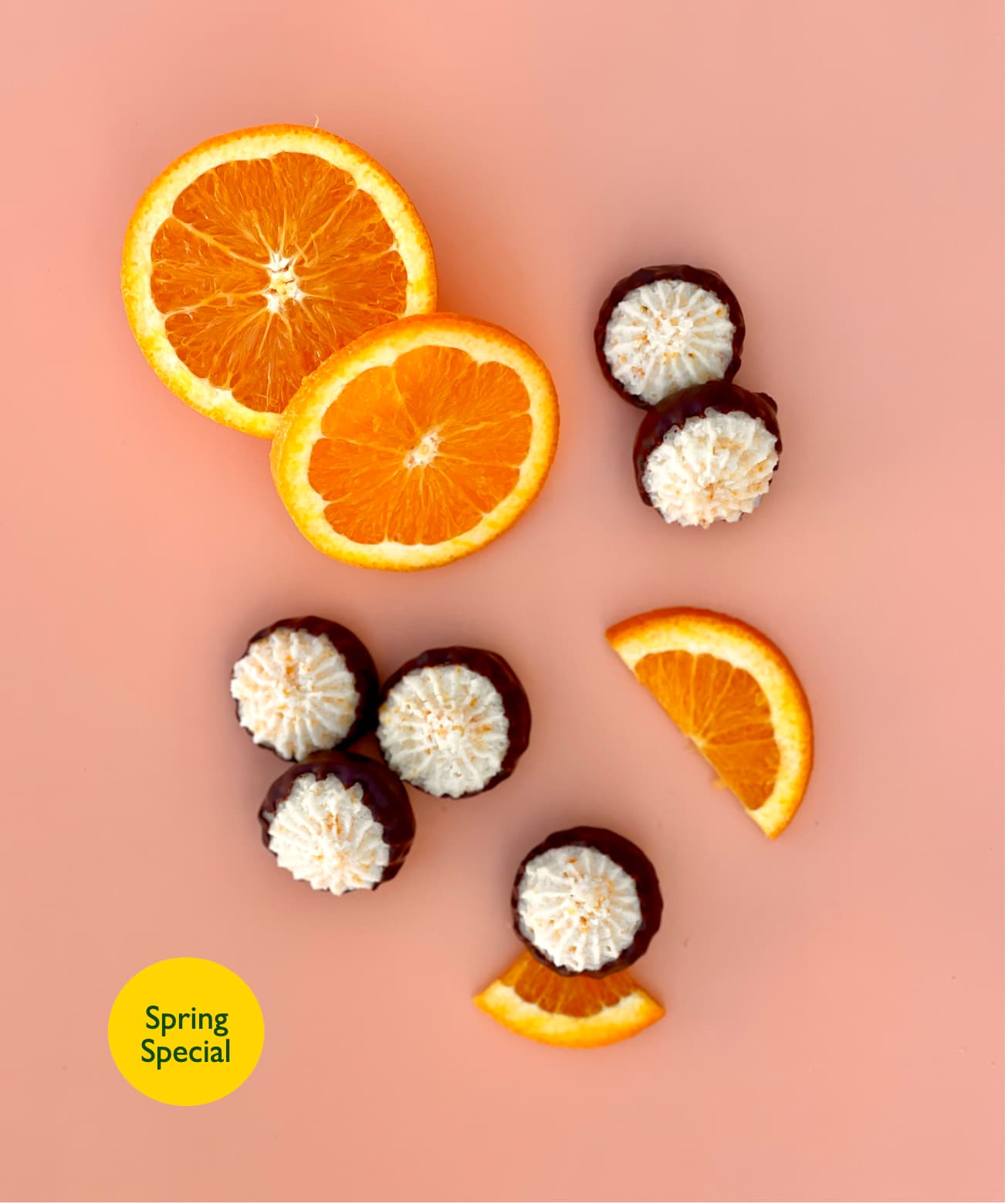 Sweet and citrus Florida oranges dipped in dark chocolate.